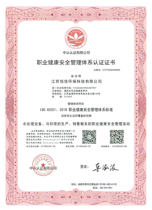 經過多年來的不懈努力,公司已經形成良好的管理和運作體系。獲得了<江蘇質量誠信3a品牌企業>榮譽證書 并已通過ISO9001質理管理體系認證、ISO1400環境管理體系標準及 ISO45001職業健康管理體系標準。